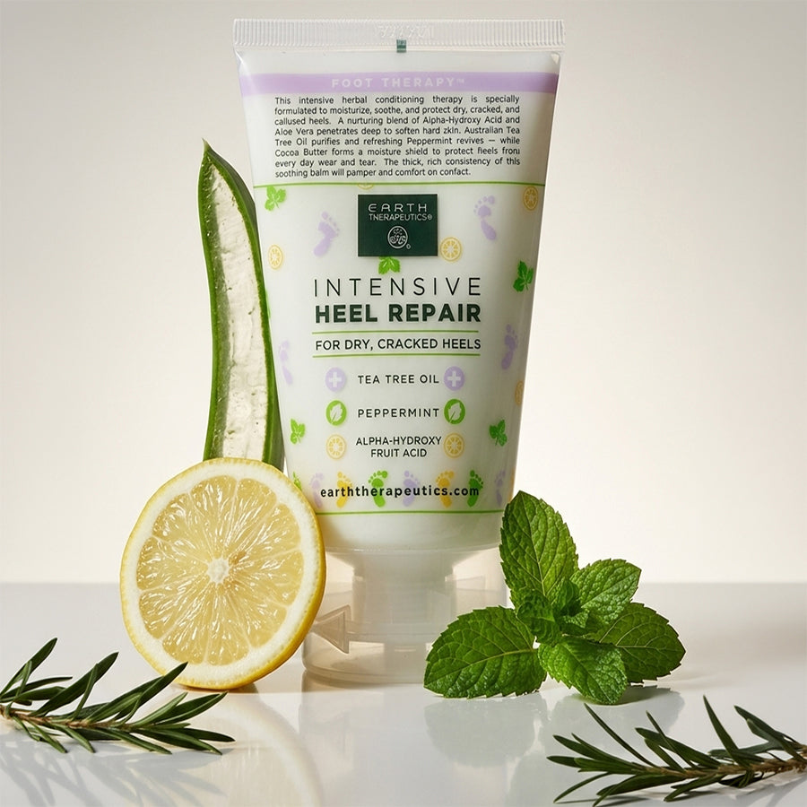 Infused with a therapeutic trio of Shea Butter, Aloe Vera & Alpha-Hydroxy Acids, this ultra-rich cream provides deeply penetrating moisture for dry, cracked heels. Tea Tree Oil & Peppermint provide naturally antiseptic, cooling relief.