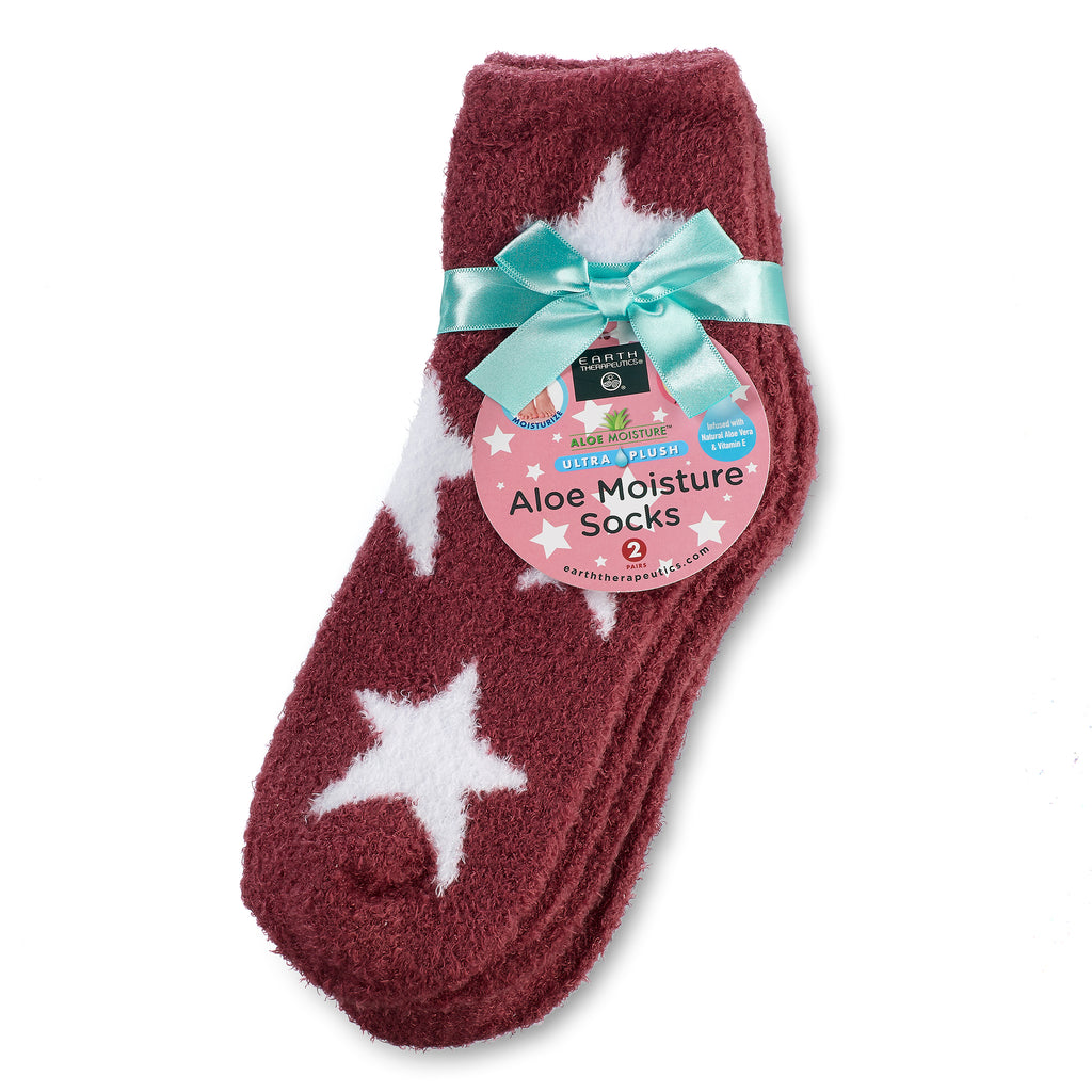 Aloe Socks - 2 Pack - Stars/Burgundy - NEW